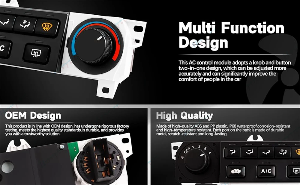 [الوظيفة]: نظام التحكم في مناخ السخان وحدة متعددة الوظائف، تتميز بقدرات التبريد والتدفئة وإزالة الجليد. يتحكم بدقة في درجة حرارة المقصورة الداخلية، وسرعة الرياح، واتجاهها، مما يضمن رؤية واضحة في الظروف القاسية. تصميمه المرن المزود بمقبض وأزرار يتيح تعديلات سهلة، مما يجعله خيارًا موثوقًا به للسائقين.