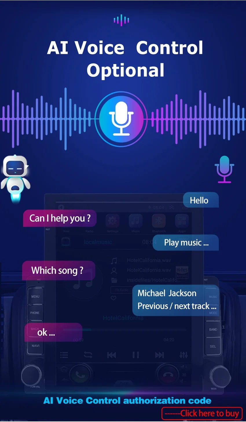 هذا هو التحكم الصوتي AI للوظيفة الرئيسية لراديو السيارة، ويدعم اللغات: الإنجليزية، الروسية، الفرنسية، الألمانية، الإيطالية، الإسبانية، البرتغالية، العربية. الوظيفة اختيارية، إذا كنت بحاجة إليها، يرجى النقر هنا للشراء.