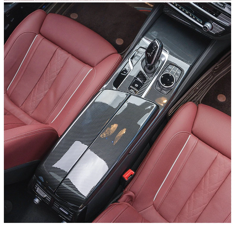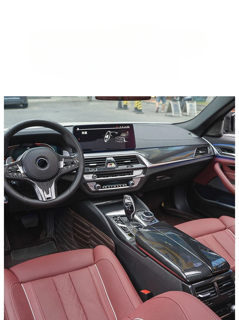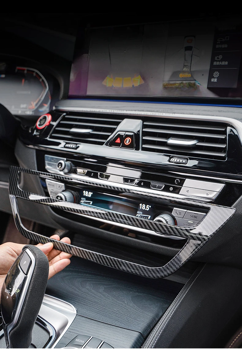 لسيارات BMW الفئة الخامسة G30 G38 2018-2023 من ألياف الكربون لوحة التحكم المركزية غطاء لوحة القيادة ملصقات الزخرفة ملحقات ضبط التصميم الداخلي